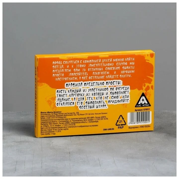 Купить игра для компании "фанты буханты" 20 карт от 100 руб. с доставкой до пункта выдачи в Покачах. Интернет магазин ДекаМаркет. Оплата при получении.